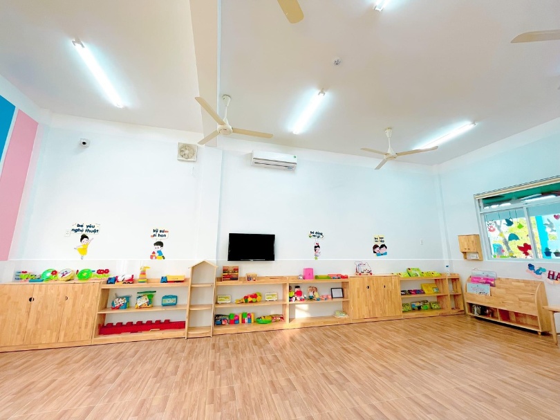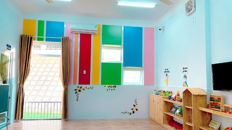 Trường học thoáng mát rộng rãi có đầy đủ trang thiết bị, cô giáo chăm sóc rất vui vẻ, nhiệt huyết tận tình thân thiện cởi mở